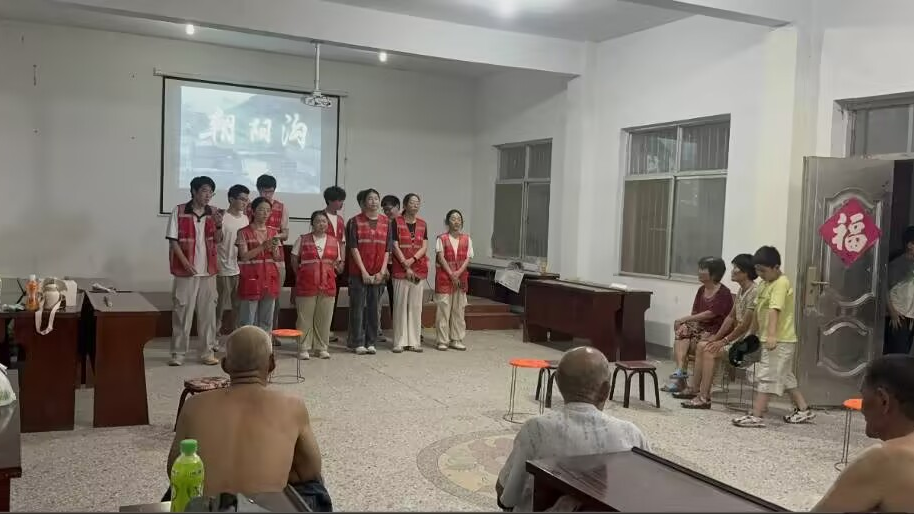 7月6日晚,实践队在村庄内组织了一场放映活动,为村民们带来了丰富的文化体验,并以此为契机开展了调研工作。放映前,队员们首先表演了笛子独奏《沂蒙山小调》。随后,全体队员共同合唱了《我的祖国》和《外婆的澎湖湾》两首歌曲,有效拉近了队员们与村民之间的心灵距离。表演后,实践队为村民们播放了电影《朝阳沟》。这部讲述大学生上山下乡故事的电影,引发了大部分老年人的兴趣。与此同时,队员们也分散到了村民身边,与村内老年人聊天,对农村居民的实际生活与精神状况进行了调研,进一步拉近了队员与村民之间的关系。