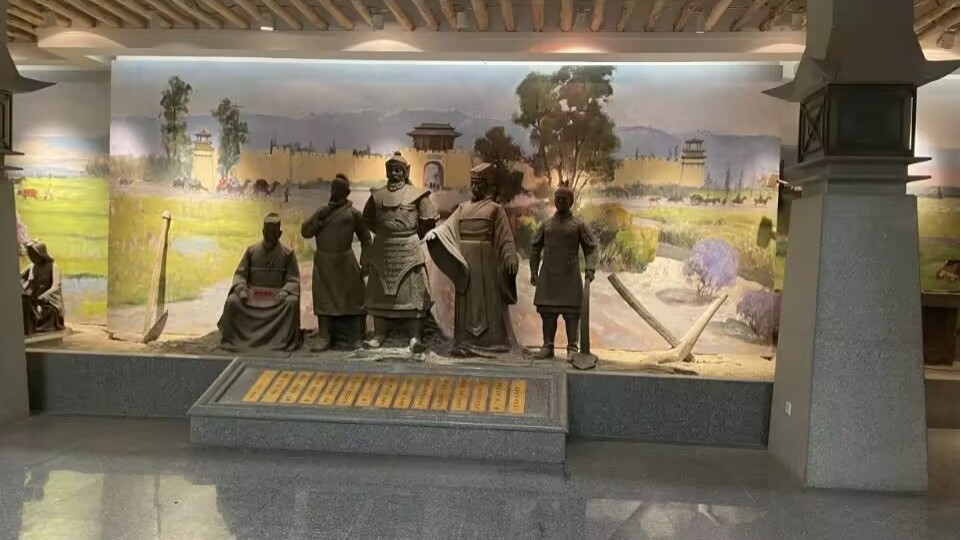 随后,高淑琴到达距团结广场不远处的轮台县博物馆。在馆内,她仔细观摩了西汉西域都护府历史场景复原群像和郑吉半身像。西域都护府历史场景复原群像呈现了不同民族的官员和士兵形象,让高淑琴切实感受到了民族团结的力量——各族人民相互依存、紧密合作,共同维护西域地区的稳定与发展,为国家的统一与繁荣贡献力量。而透过郑吉作为西域首任都护巩固了汉朝对西域的管辖,并促进了中西文化的交流的历史,高淑琴还深刻认识到了维护国家统一和民族团结对于地区发展、文化繁荣的重大意义。