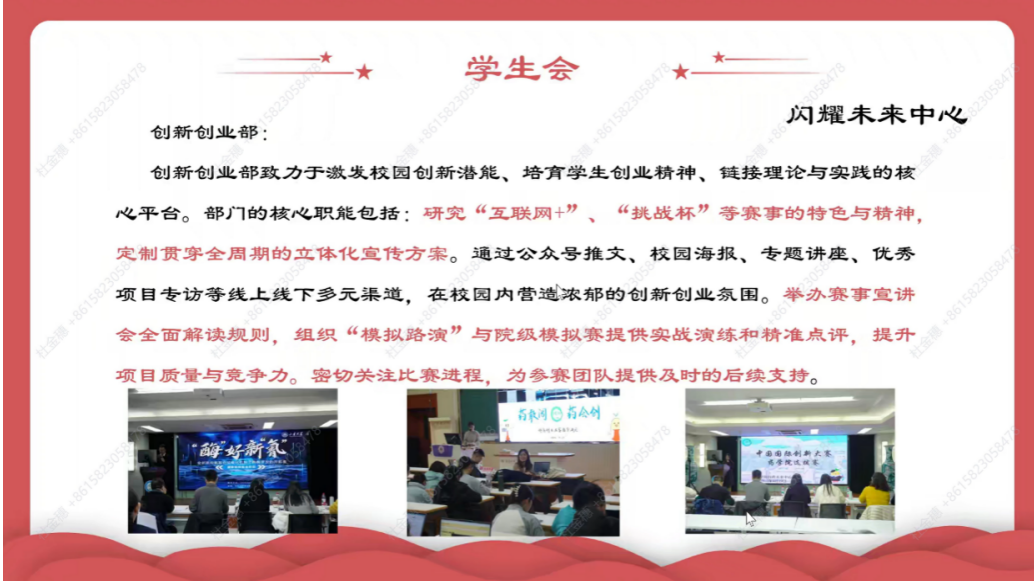 紧接着,刘懿瑄围绕学生工作进行了详尽介绍。她以自己带领的“药圃听风,史海拾贝”团队暑期实践活动为例,让新生了解了尹德瑛和赵彦伟两位教授。随后,她通过图片与文字相结合的方式向新生们讲解了米乐·M6(China)官方网站学生会的各个中心及其下设部门的分工职能和开展的丰富活动,让新生们初步了解了学生会组织的整体情况,激发了他们对学生会的浓厚兴趣。