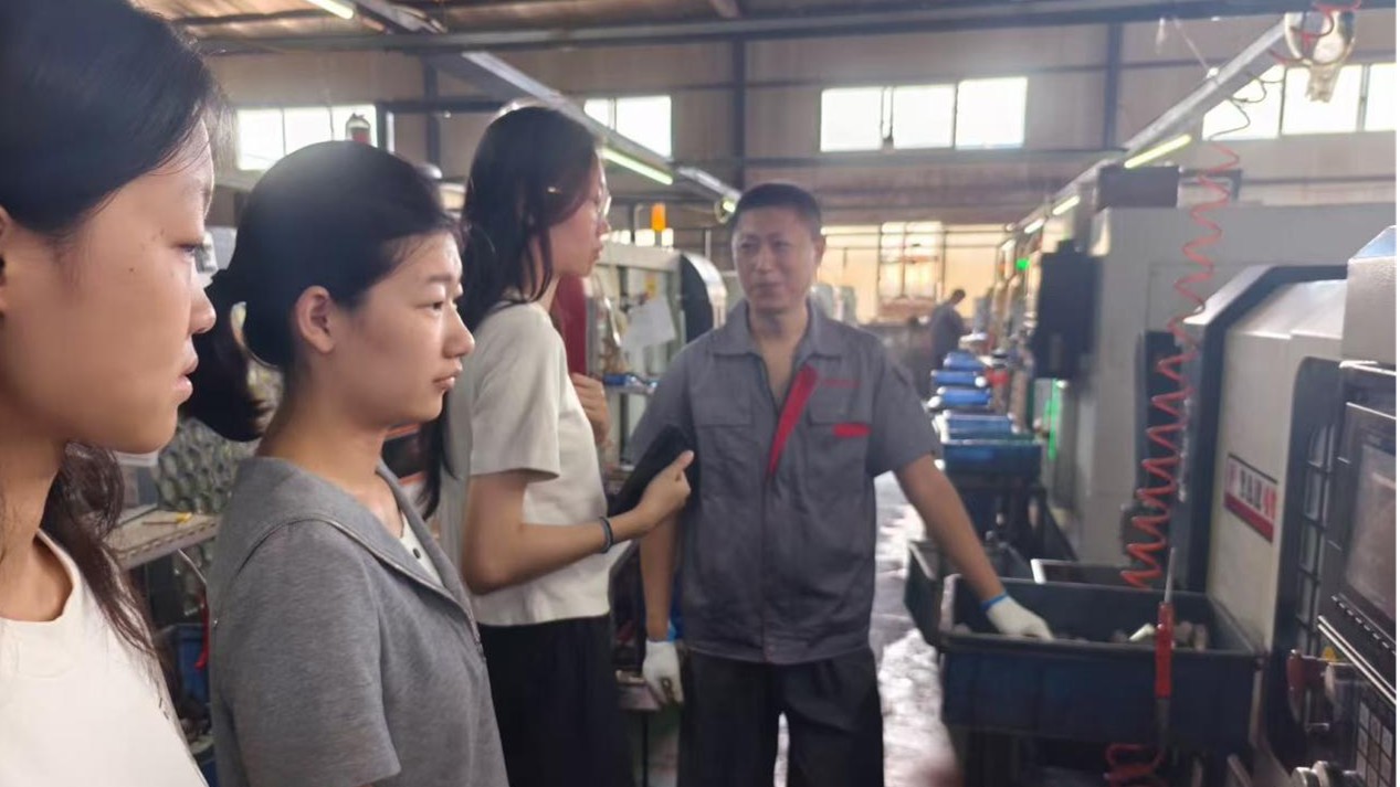 活动伊始,实践队举行启动会,学习党的创新理论核心要点,并针对企业员工特点制作了“理论+机械行业案例”宣讲课件,为后续实践活动筑牢理论基础。随后,队员们前往青岛市优力特机械车间实地调研,收集企业党建与技术创新融合案例,打磨宣讲稿并录制“微理论”短视频,为走进企业宣讲做足准备。
