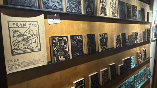 队员李冬焱深入甲马文化体验场域开展调研。甲马,作为云南地区古老的祈福民俗符号,承载着当地人对生活的祈愿。在实践操作环节,她亲手刻制了甲马印版,切实感受到刀具与木板摩挲的阻力,亲身体验了让墨色均匀附着在纸张表面,使传统图案逐渐显现的印制全过程。此次实践,让这项原本多用于民间祭祀的“神纸”从民俗角落,走进青年群体的认知视野,成为连接传统与现代的文化标识。