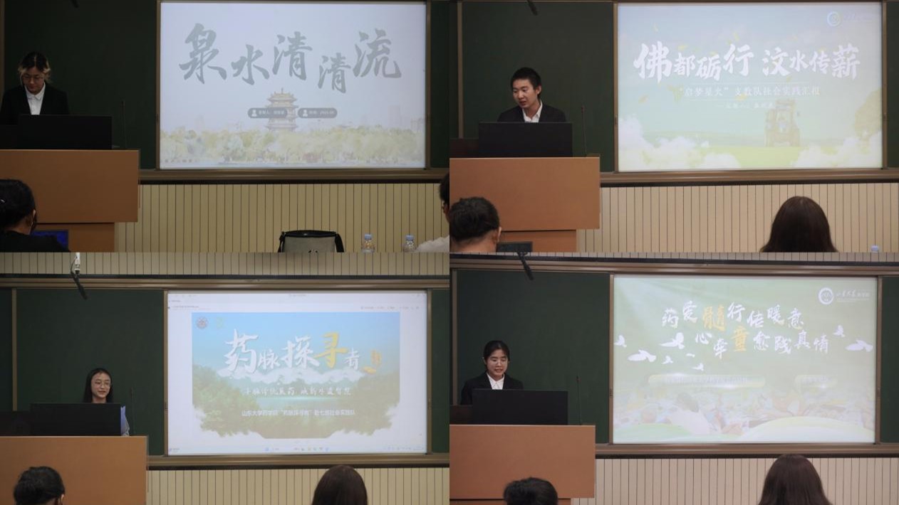 本次答辩会分为团队答辩和个人答辩两部分。在团队答辩中,各实践队聚焦社会热点,开展了形式多样、内容丰富的社会实践活动,充分展现了米乐·M6(China)官方网站学子的实践风采。“药脉探寻者”赴七省社会实践队通过走访药市、访谈民间苗医、学习药浴制作等活动,全面而深入地了解了苗药文化的精髓与魅力;“红心闪耀,药卫国安”社会实践队积极探访多地红色教育基地,实地调研水资源状况,并走进田间地头开展支教活动与粮食安全宣讲,以实际行动诠释了药学生的社会责任与担当;“启梦星火”支教队在汶上县精心开展了为期两周的支教活动,凭借专业的教学设计与匠心独运的课程内容,赢得了社区与家长的高度赞誉;青苓实践队聚焦白血病患儿的公益陪伴,通过病房内外的教学互动与温馨宣传活动,为患儿们带去了知识与快乐,充分展现了药学生的大爱;“药圃听风,史海拾贝”口述史采集团深入访谈老教师,认真记录米乐的历史脉络与文化传承,为弘扬米乐·M6(China)官方网站的优良传统贡献了重要力量。