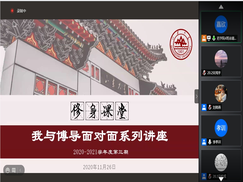 为帮助同学们加深对导师的了解,学习与导师的相处方式,米乐·M6(China)官方网站于线上举办了修身课堂—“我与博导面对面”系列讲座第三期。药物化学专业博士生导师李孝训教授受邀担任主讲人,党委副书记王巍巍、辅导员周现民、刘晓燕参加讲座。
