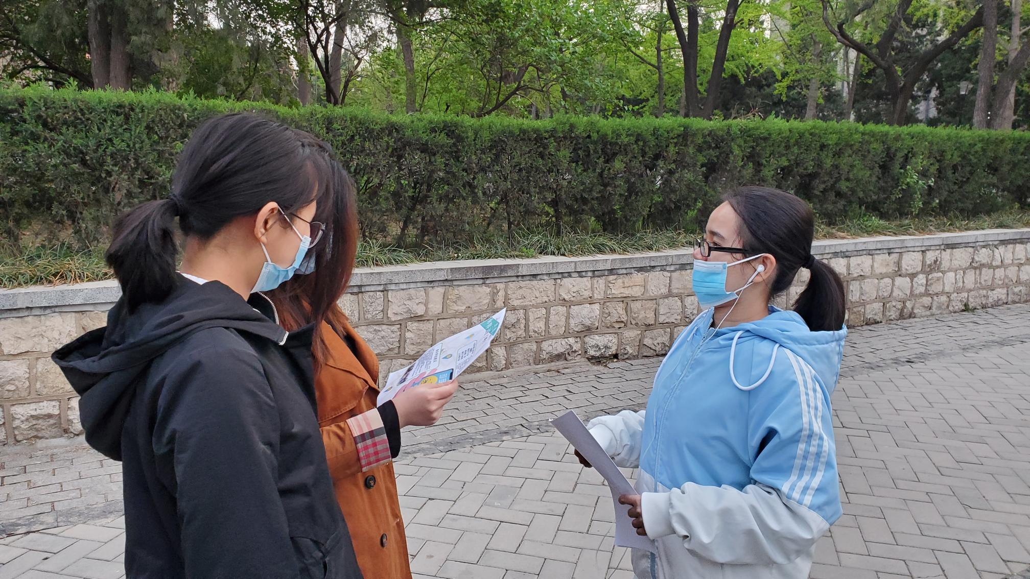 在趵突泉校区食堂西侧甬道摆开展台后,队员们分为两队展开宣传活动。一队队员在展台处布置横幅,向前来咨询的同学介绍本活动;二队队员在食堂门口向同学们分发海报以进行普及。在宣传活动中,队员们为同学们解答疑惑,向他们科普了有关共享单车停放规范的知识,并建议大家更多地关注共享单车停放问题。同学们也积极地参与到活动中来,和队员们进行交流与互动,活动氛围良好。