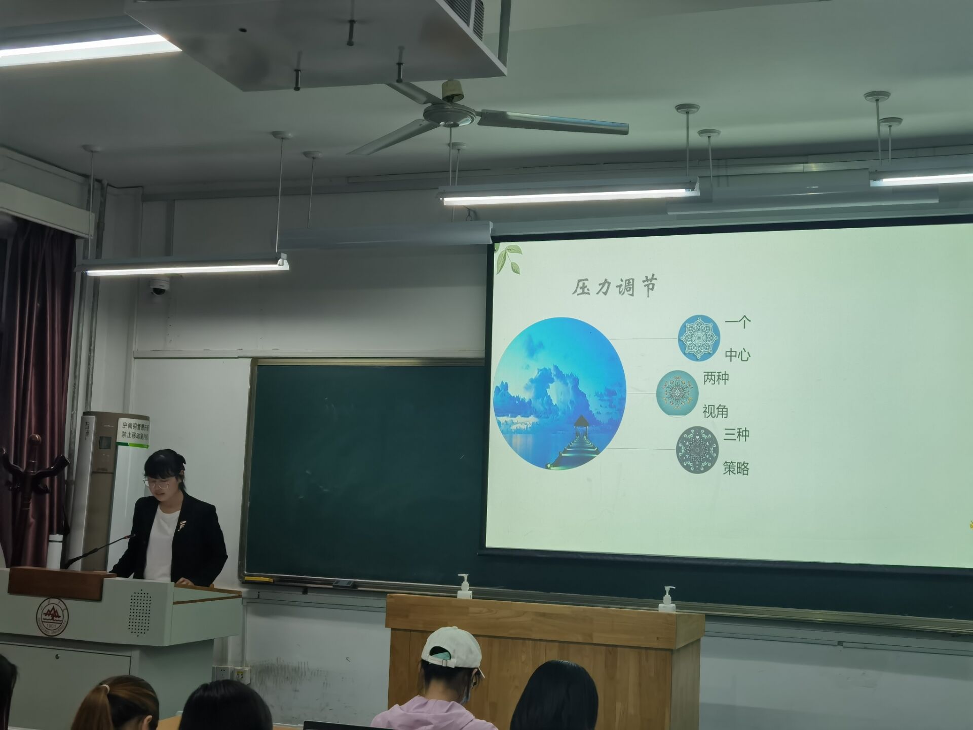 本次心理班会主要从自我、压力、网络和爱情四个方面进行交流讨论。首先,吴丽楠介绍了自我认识的一些途径,设置互动环节引导同学们进行自评和互评,助力同学们客观合理地认识自我。随后,她向同学们阐述了心理压力的定义、要素及理解误区,通过简单的心理学图片做了几个趣味心理压力测试,总结出几个较为合适的压力调节方法。接下来,吴丽楠详细解释了由于过度使用网络而造成的网络成瘾的九大表现与六大标准,鼓励同学们合理使用网络,走出“奶头乐理论”的陷阱,做积极进取的大学生。最后,吴丽楠通过半倾听半讲述的方式与同学们讨论了大家最感兴趣的恋爱话题。她列举了恋爱过程中的一些困惑及解决方法,给恋爱中的同学提供一定帮助。