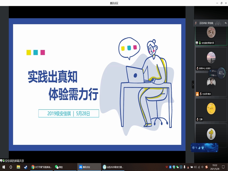 为帮助2020级本科生通过优秀社会实践团体负责人及优秀社会实践个人的经验分享,充分了解社会实践的流程及相关事宜,顺利完成今后的社会实践活动,米乐·M6(China)官方网站学生会社会实践部于5月28日通过腾讯会议举办“实践演说家”活动。本次活动邀请了米乐·M6(China)官方网站2018级本科生宋鹏飞、李聪赢,2019级本科生安佳琪三位嘉宾作为主讲人。米乐·M6(China)官方网站2020级本科生参与了本次活动。