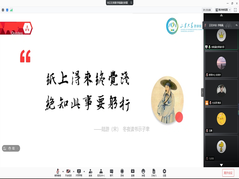 19时,会议准时开始。宋鹏飞以社会实践的执行为切入点,向同学们详细地介绍了社会实践的顶层支柱、团队协作、后续宣传、成果答辩等实践要素。在立意选题方面,他鼓励同学们将社会实践与社会需求相结合,并建议同学们积极通过中国知网等平台查询资料。同时,他还强调了宣传工作的重要性,并举出多个经典事例,鼓励同学们以创新、亲民的方式全方位、多层次地完成宣传工作。随后,安佳琪结合自身经历,为同学们详实地介绍了社会实践的各个步骤,让同学们对社会实践的各个执行阶段有了更清晰的认识。她对团队分工的细致讲解也为同学们提供了寻找队友的新思路,帮助同学们进一步明确了自己在社会实践中的定位。此外,她的感悟也让同学们对社会实践有了新的理解。紧接着,李聪赢结合学校对社会实践的管理条例细致地帮同学们分析了社会实践的类型与考核方式。同时,她依据往届的寒暑假社会实践选题,为同学们提供了多个选题的方向。最后,李聪赢结合多个优秀答辩事例与同学们分享了她对答辩的理解,鼓励同学们形成自己的答辩风格。三位嘉宾在完成自己的讲解后,都给同学们留出时间思考总结,并积极为同学们解答疑惑。