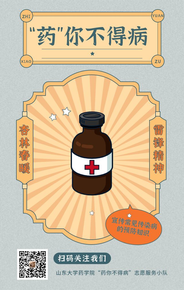 活动初期,队长贠晗合理规划了志愿活动流程,并根据具体情况进行了工作任务分配。3月16日,队长与商家进行了沟通,初步确定了宣传海报的预算。与此同时,部分队员在商讨后开始行动,他们以每种传染病的特点及防治方法为基础进行创意构思,制作出了三期电子版传染病知识宣传海报。其余队员注册并经营宣传公众号——“药你不得病”,并于3月21日发布了第一篇关于过期药品处理知识的推文。推文中介绍了药品过期的现象及危害,讲述了处理过期药品正确方法,号召人们合理用药、减少屯药、杜绝浪费。
