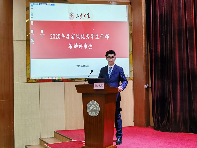 进入大学以来,宋鹏飞学长全面发展,学思并重:在学习方面,他曾获国家奖学金,在北大中文核心期刊上发表论文,负责的大学生创新实验课题获国家级立项;在社会实践方面,他履历丰富,曾获评省级社会实践优秀个人;在工作方面,他现任山东大学米乐·M6(China)官方网站第21届学生会主席、山东大学常代会主任等职务,并于近日获山东省“优秀学生干部”荣誉称号。