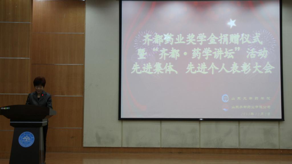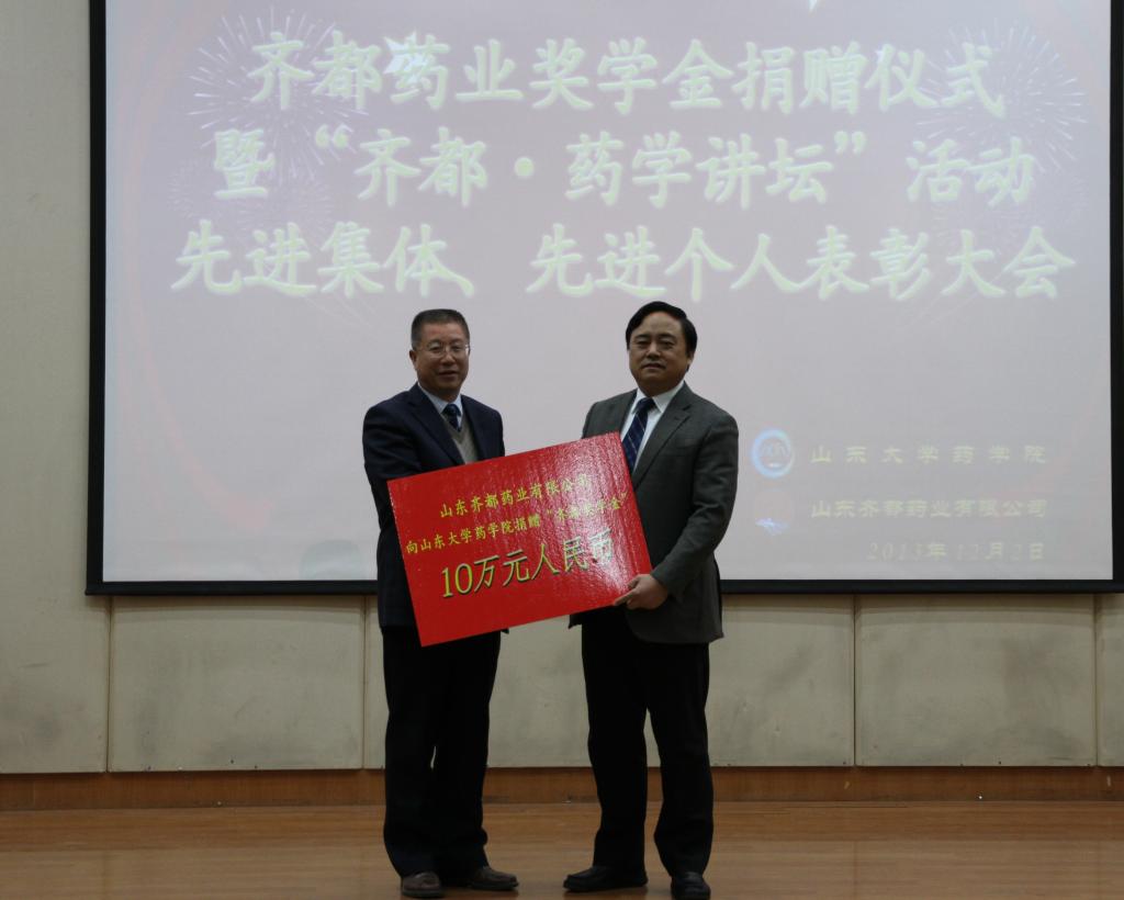 12月2日,“齐都奖学金”捐赠仪式暨“齐都药学讲坛”活动先进集体及先进个人颁奖典礼在趵突泉校区举行。山东齐都药业集团董事长郑家晴、米乐院长王凤山等出席了捐赠仪式及颁奖典礼,捐赠仪式及颁奖典礼由米乐·M6(China)官方网站党委副书记李雨嘉主持。 捐赠仪式上,郑家晴代表齐都药业向米乐·M6(China)官方网站捐赠10万元,用于支持学院发展。王凤山在致辞中表示,人才的培养需要学校和社会的共同参与,感谢齐都药业集团对于学院发展的大力支持,并鼓励同学们不断努力,争做优秀药学人。郑家晴、王凤山共同为获得药学讲坛“先进个人”和“先进集体”的同学和班级代表颁发荣誉证书。 近年来,齐都药业集团与米乐加强了产学研合作,为学院顺利开展教学实践、学生活动、学生就业提供了优质、广阔的平台和大力支持。“齐都药学讲坛”是米乐·M6(China)官方网站为促进本科生专业知识和综合素质提高,将知识学习与人格培育体系相结合而专门开设的活动。