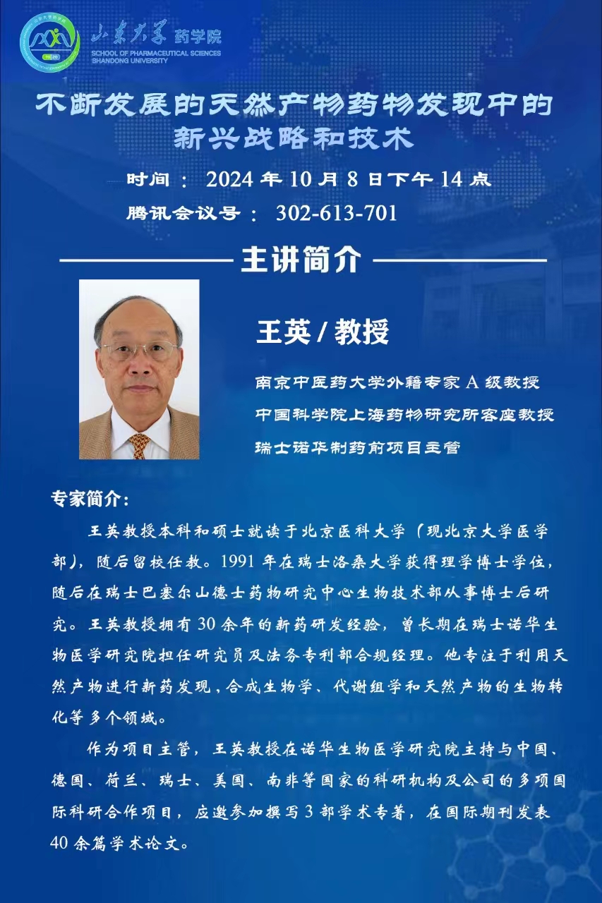 学术讲座:不断发展的天然产物药物发现中的新兴战略和技术