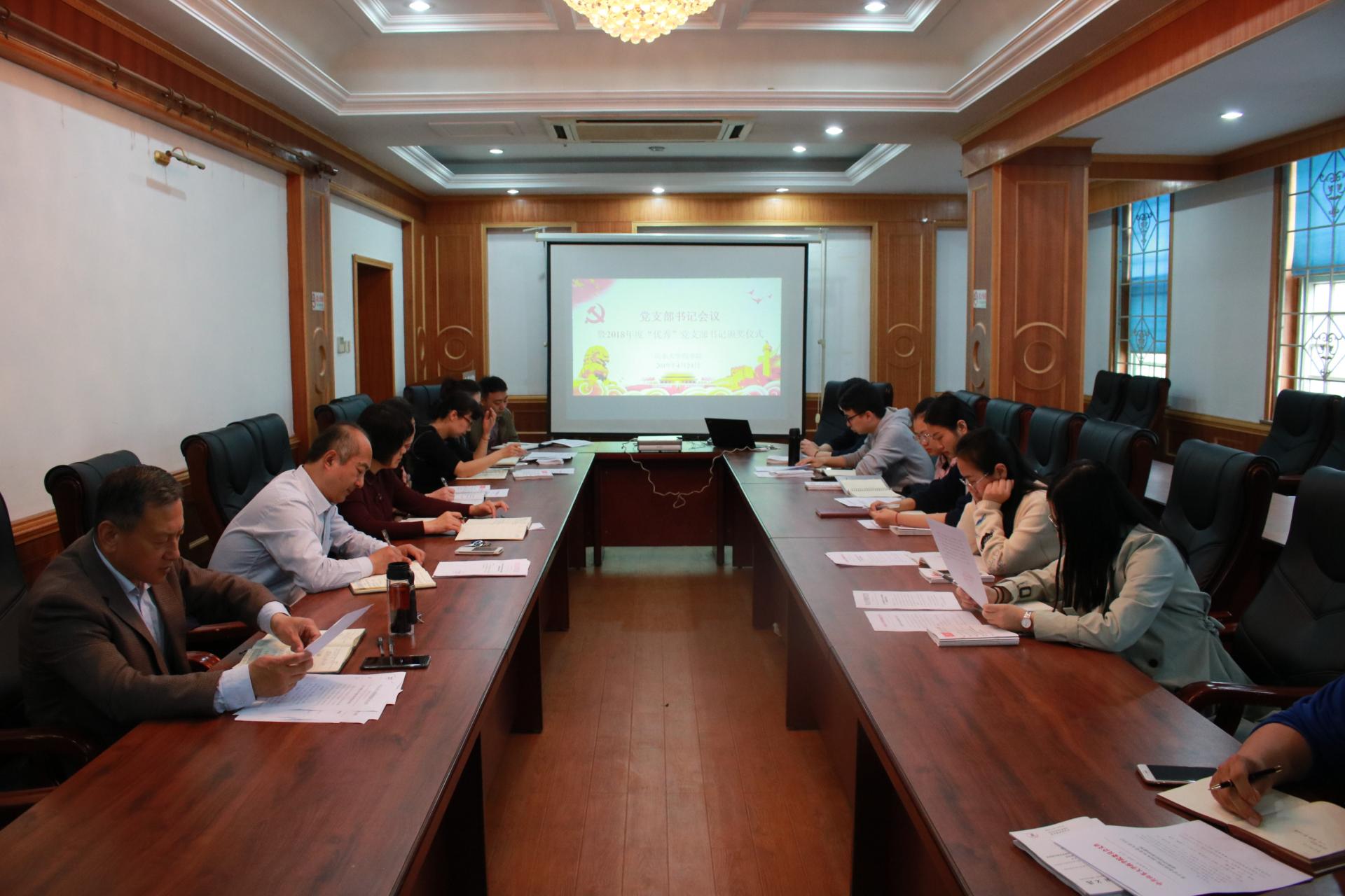 2019年4月24日上午,米乐·M6(China)官方网站在综合楼215会议室召开了党支部书记会议,进行近期几项重要工作的安排。米乐·M6(China)官方网站党委书记王晓林、党委副书记张慧、组织员徐文忠与米乐·M6(China)官方网站全体党支部书记共同参加了此次会议。