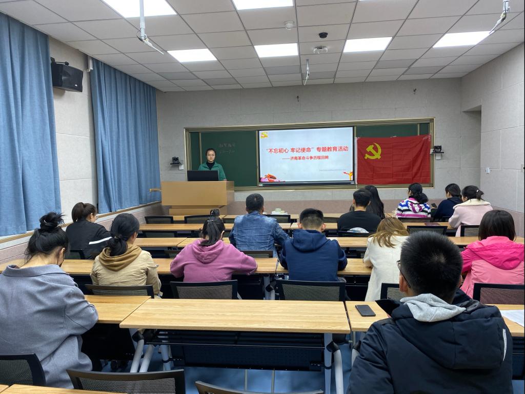 首先进行了第一项内容,由杨雪同志带领大家一起观看了短片《初心如磐》——济南革命斗争历程回眸。短片讲述了济南中共党组织带领人民群众进行革命斗争的历史,着重介绍了山东中共党组织的创始人王尽美与邓恩铭。短片结束后,围绕“不忘初心、牢记使命”的主题,党员同志们发表了作为学生党员关于何为初心、有何使命的感想。大家表示要时刻牢记自己是一名中国人、更是一名党员的身份,坚定信念,增强信心,坚守青春梦想;要支持并珍惜党支部组织的每一次集体学习,认真学习专题内容,以实际行动提高自身党性修养。会议补选了党支部委员,并对支委职务进行了调整。