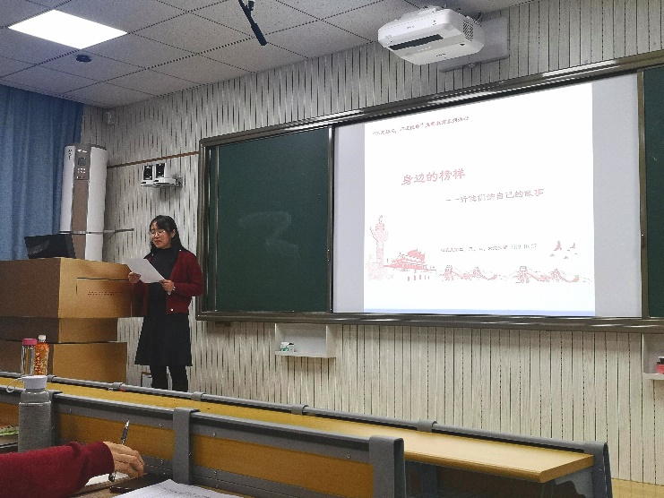 米乐·M6(China)官方网站“不忘初心、牢记使命”主题系列活动之“身边的榜样”宣讲活动于2019年10月27日18点30分在米乐·M6(China)官方网站8号楼106D教室开展,该活动由米乐·M6(China)官方网站研究生第二党支部、第三党支部、第五党支部、第六党支部联合举办。齐鲁青年学者蔡容教授,荣获山东大学第十届“五·四”杰出青年奖、山东省优秀毕业生、山东省优秀学生等荣誉称号的博士后赵华俊应邀参加活动,为大家讲述他们自己的故事。各支部党员、积极分子、研一新生等参加活动。活动由米乐·M6(China)官方网站第五党支部书记吴月娥主持。