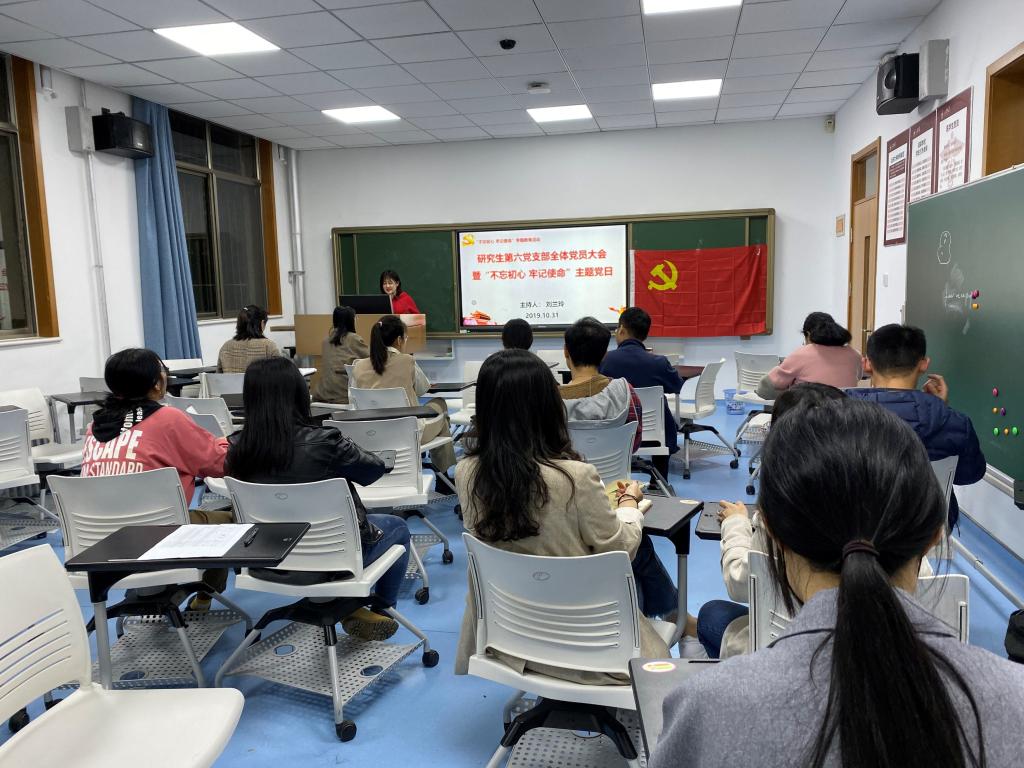 10月31日晚,研究生第六党支部召开党员大会。会议主题为党员大会暨“不忘初心、牢记使命”主题党日。会议由支部书记刘兰玲主持。