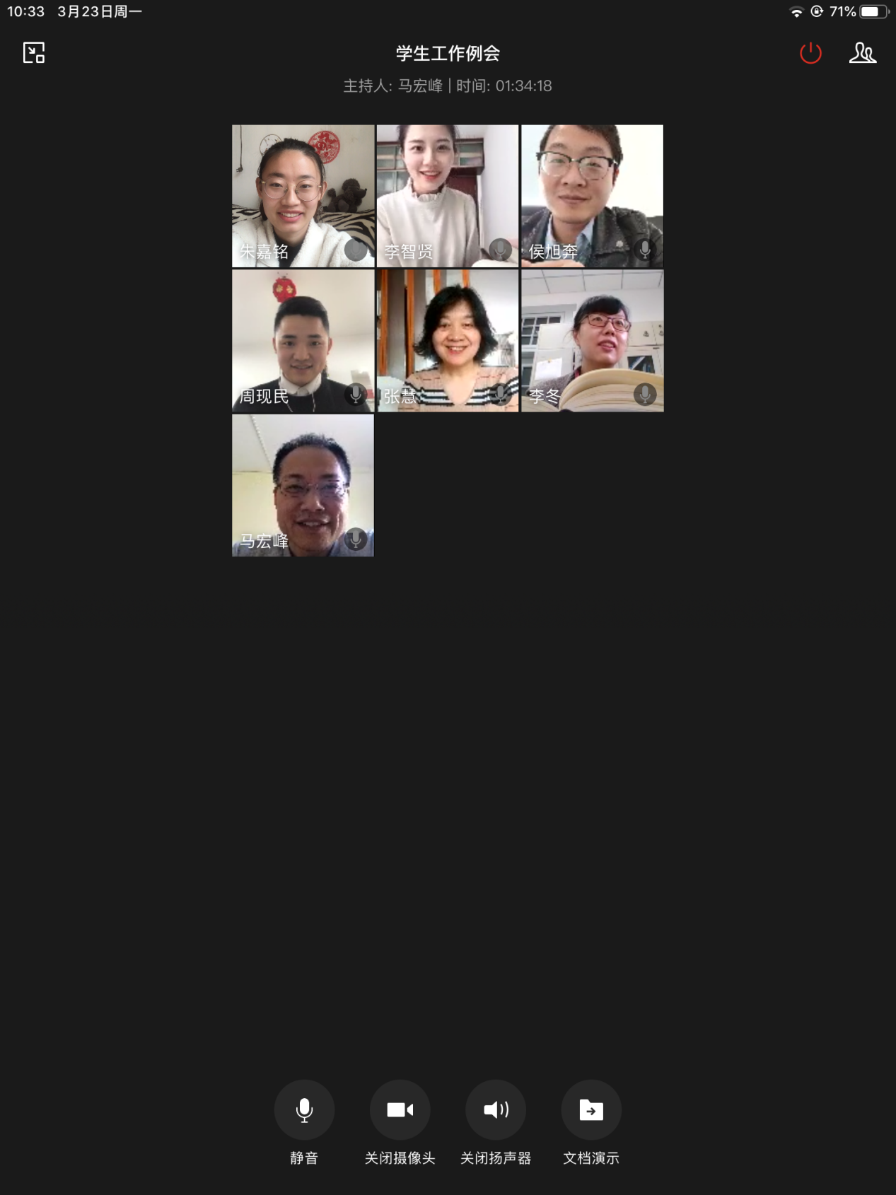 3月23日上午,米乐·M6(China)官方网站学生工作队伍通过企业微信平台召开第四次线上工作例会,主要围绕疫情防控工作、学生就业工作推进情况、2020年党员发展计划等方面进行讨论交流,部署下周工作安排。会议由党委副书记马宏峰主持,党委副书记张慧和全体辅导员参会。