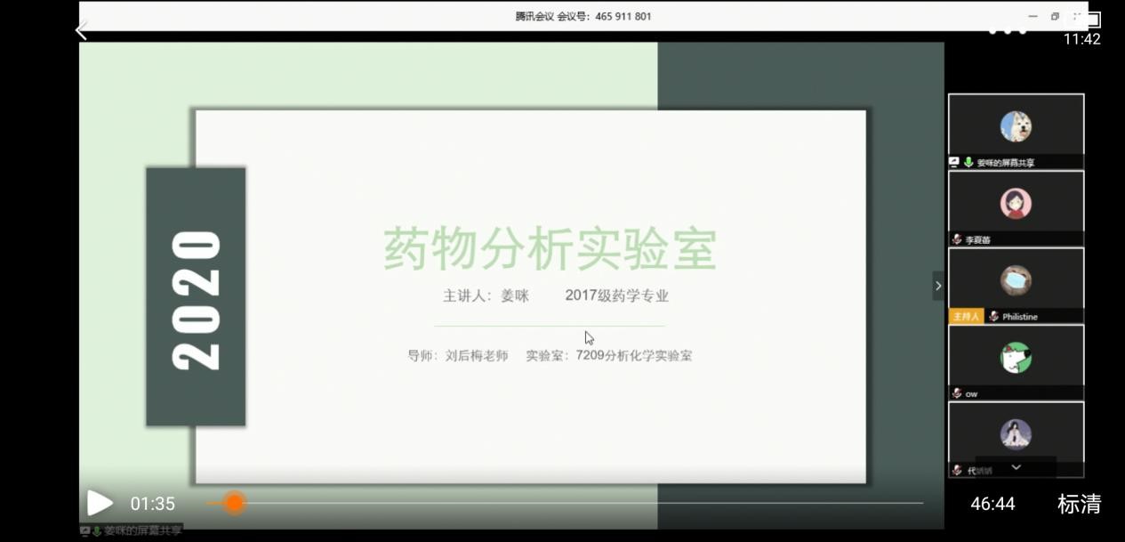 本次活动邀请了四位活动嘉宾,本科生杜智勇、姜咪和马晓博和2019级临床药学方向的研究生聂爱清。首先,三位本科生分别介绍了各自所加入的实验室的具体情况。马晓博介绍了药物化学研究所的课题开展情况,她以“神经氨酸酶抑制剂”课题为例,说明了做实验所需的查文献、设计合成路线和投反应三大步骤,分享实验室的温暖故事。姜咪分享了药物分析实验室的基本情况、日常工作和特点,并结合自己所加入的大学生科技创新实验,讲述实验操作历程。杜智勇介绍了临床药学实验室的研究内容和实验内容,强调团队精神的重要性。随后,聂爱清从研究生的角度对临床药学实验室的具体情况进行了补充介绍,并进行了互动答疑。在答疑环节中,同学们积极地在讨论区提出关于进入实验室的问题,嘉宾对同学们的疑问进行了耐心细致的解答。
