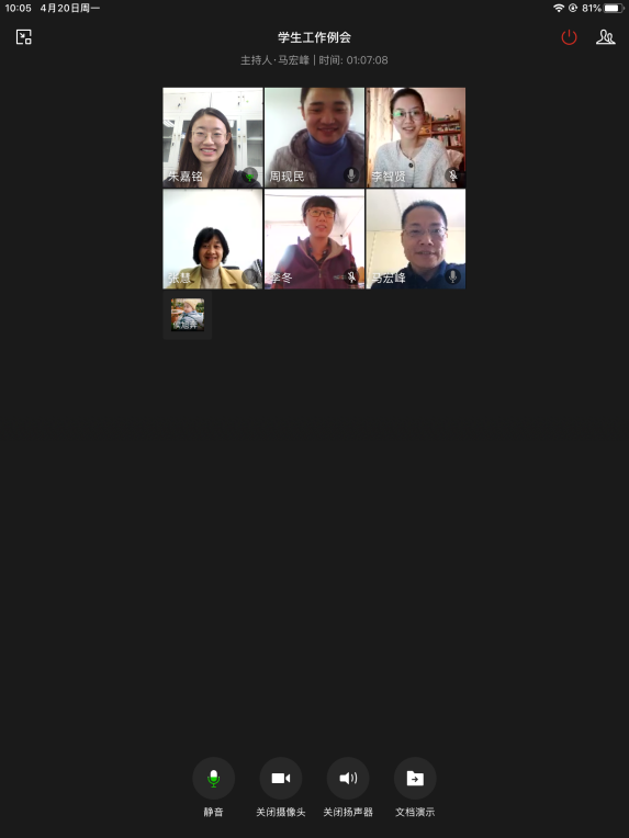 4月20日上午,米乐·M6(China)官方网站学生工作队伍召开视频工作会议,研判当前疫情防控形势,听取近期工作汇报,部署下周工作安排。会议由党委副书记马宏峰主持,党委副书记张慧及全体辅导员参会。