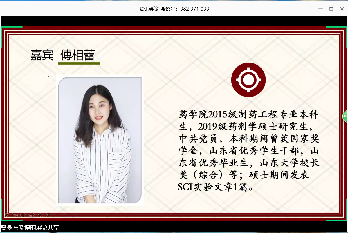 最后是聂爱清的分享。她以诙谐幽默的方式,讲述了一条“咸鱼”的“翻身路”,从学习成绩、做实验、参加药苑论坛、做ppt答辩的进步等方面进行了分享。同学们对这些方面有了更加深入的了解,也感受到一位优秀学生的艰苦奋斗。