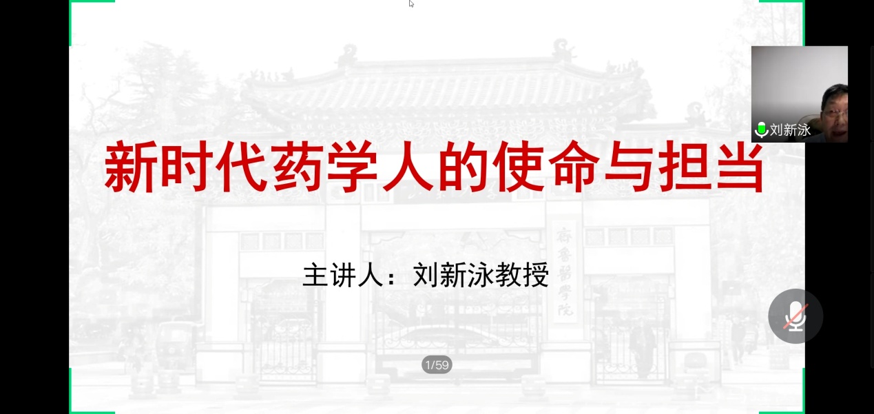 刘新泳以“新时代药学人的使命担当”为主题与同学进行交流。刘新泳表示,在党中央的坚强领导下,举国上下勠力同心,全国人民共克时艰,疫情防控终于取得阶段性成果,这充分体现了中国特色社会主义制度的优越性。山东大学援鄂医疗队在最危急的时刻义无反顾,挺身而出,为疫情防控贡献了智慧与力量。作为新时代药学人应当树立远大理想,增强药物研发的忧患意识和责任感。他希望同学们返校后要珍惜时间,奋发努力,积极开展科研工作,同时要认真做好个人防护工作,严格遵守学校学院包括疫情防控规定在内的各项管理制度。