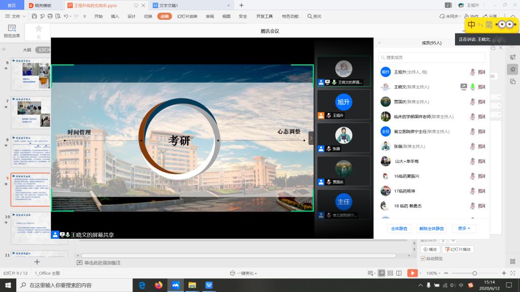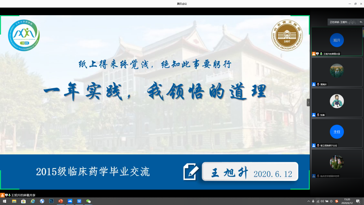 首先,王晓文以“不悔过去、不畏将来”为主题,围绕自身经历为同学们提出了关于考研、出国等方面的建议,鼓励同学们勇于尝试,不要安于现状,学会合理规划时间,提高学习效率;接着,王旭升则针对实习做了分享,提醒同学们珍惜实习、重视实习,利用实习找问题、找差距,以岗位胜任力为导向在实习中锻炼自己的实践能力,切勿好高骛远,忽视劳动的价值;之后,张薇以“想做就做,大胆试错”为主题,同样围绕自己丰富的学习、出国、参赛等经历,鼓励同学们不要妄自菲薄,利用大学时光自信地尝试自己感兴趣的事情。会议最后,郝国祥老师、侯宁主任分别做点评:郝国祥老师提醒同学们要注重全面发展,合理安排学习时间,在需要专心学习的时候切勿心猿意马;侯宁主任总结了本次会议的主要内容,对参会的同学们寄予殷切的期望,鼓励同学们在国家重视科技发展的大好形势下,认真学习,多多实践,成为优秀的药学人。
