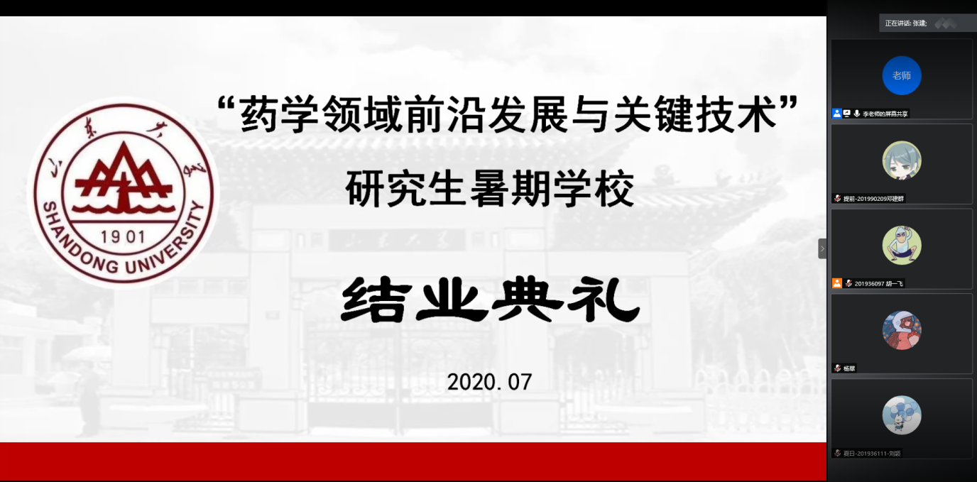 2020年7月17日下午,为期三周的“药物领域前沿发展与关键技术”研究生暑期学校顺利落下帷幕。结业典礼由米乐·M6(China)官方网站副院长张建主持,米乐·M6(China)官方网站院长刘新泳出席结业典礼并作总结讲话。