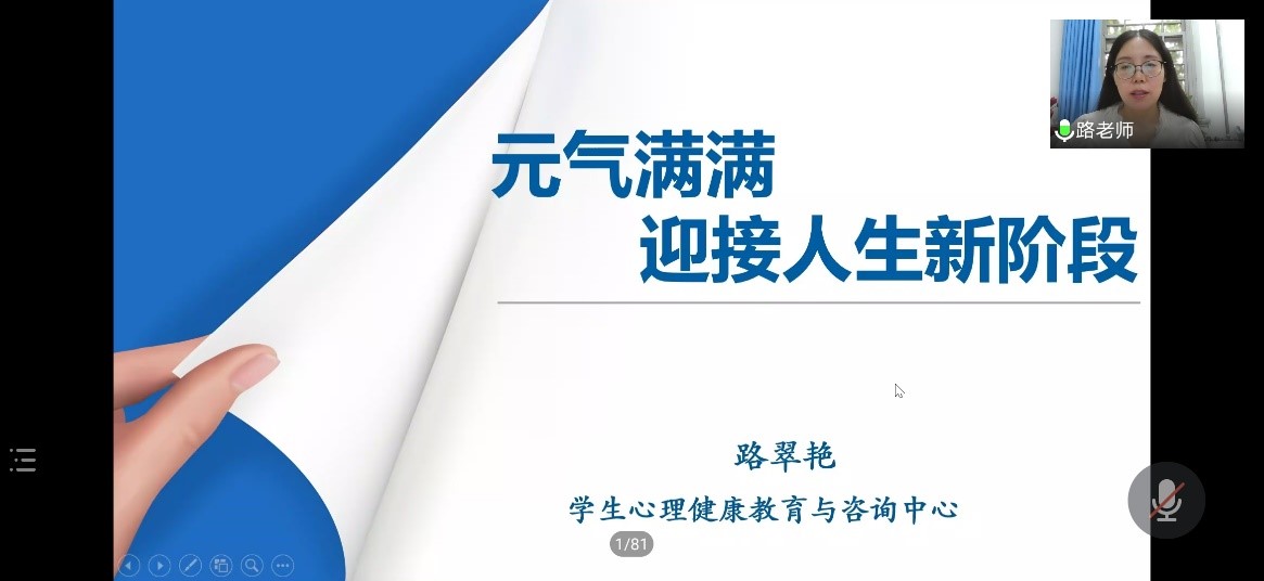 9月11日上午,米乐·M6(China)官方网站邀请学校学生心理健康教育与咨询中心路翠艳老师通过视频的方式作了题为“元气满满,迎接人生新阶段--研究生心理健康教育”的专题讲座,米乐·M6(China)官方网站2020级全体硕士、博士研究生参加了此次讲座。