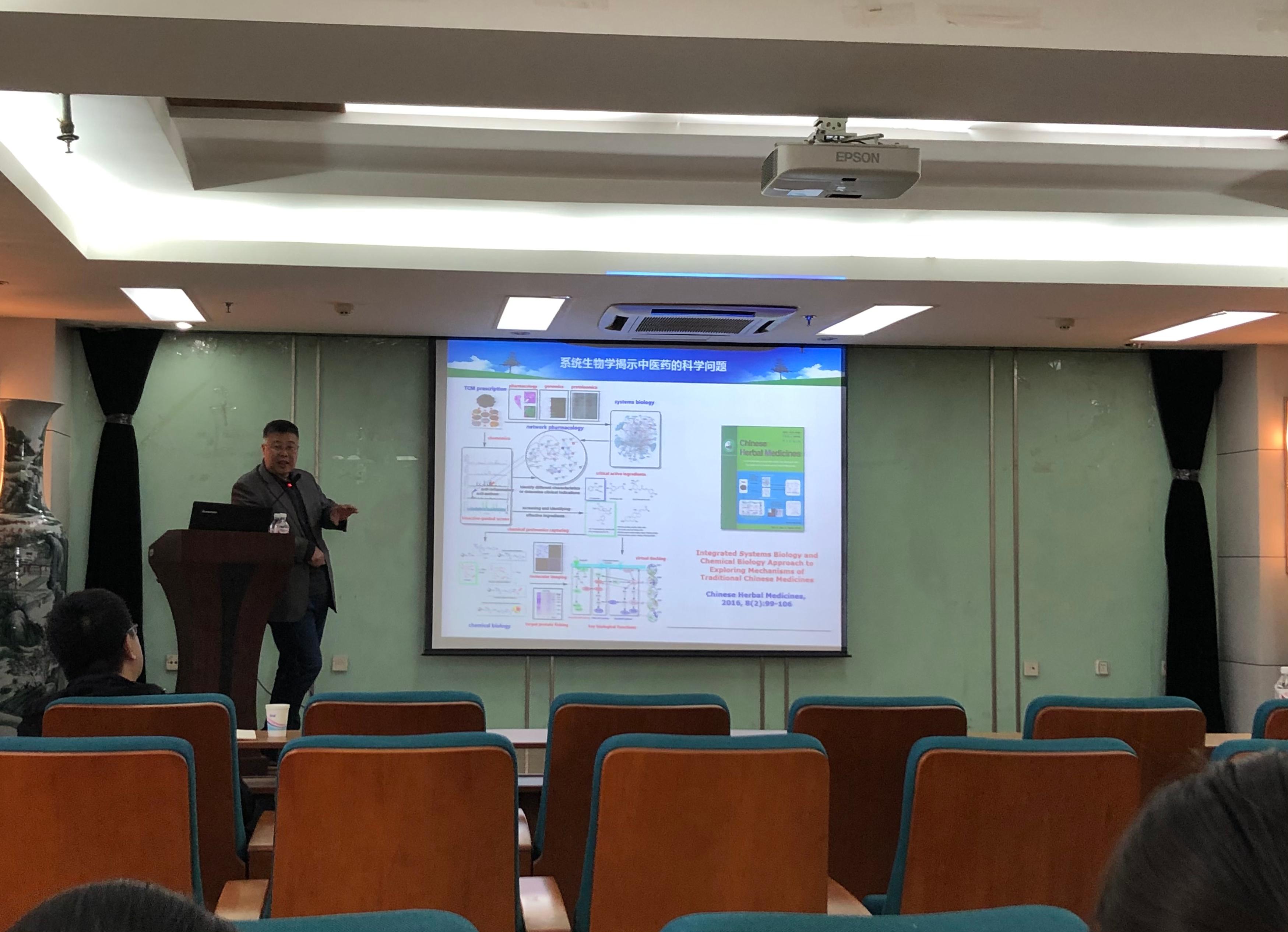 白钢教授从中西医治疗疾病的区别切入,介绍了系统生物学的概念以及现代多组学在中医药中的应用,详细地讲解了从系统生物学到化学生物学完整的研究路径和多种方法,包括蛋白靶点的通路验证与评价技术,药效成分的发现及鉴别等技术,以及探针的制备和示踪技术,并提供了从中医药到现代生物学的研究思路。此外,白教授还介绍了研究团队一些新的研究进展,如“治疗消渴症多种中药的作用机制”,“基于胰岛素通路相关靶点的成分与靶点的虚拟对接研究”,“黄芩素降糖的化学生物学研究”和“甘草次酸改善胰岛素抵抗的潜在靶点研究”,最后,将对中医传统智慧的科学研究成果实际应用到现代健康产品的开发。在问题交流环节,老师和同学们进行了深入的学术探讨,白教授耐心地解答了同学们的问题,师生们感到受益匪浅。