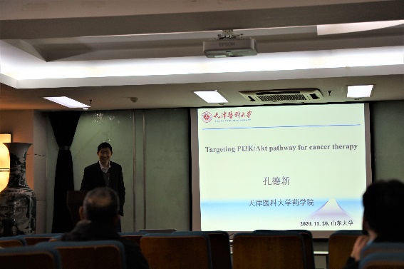 11月20日下午,由米乐·M6(China)官方网站主办的“2020山东大学博士研究生高端学术讲坛”在科研楼五层报告厅顺利举办,本次讲坛以 “靶向PI3K/AKT通路的抗肿瘤药物研究”为主题。天津医科大学特聘教授孔德新担任主讲人。讲坛由米乐·M6(China)官方网站郭秀丽教授主持。