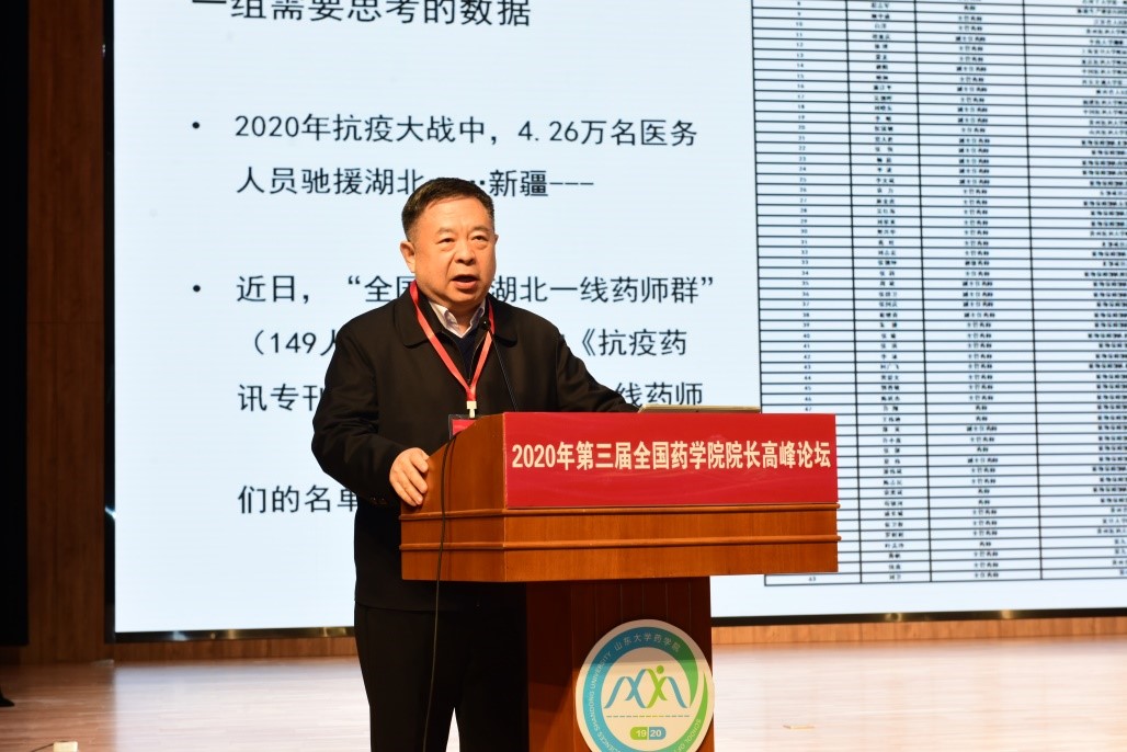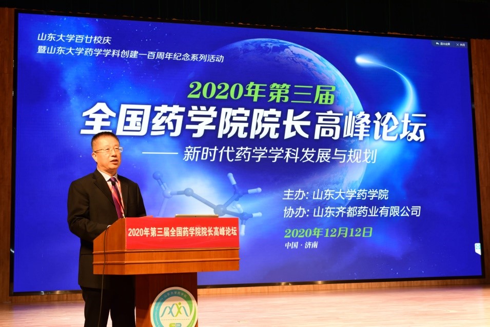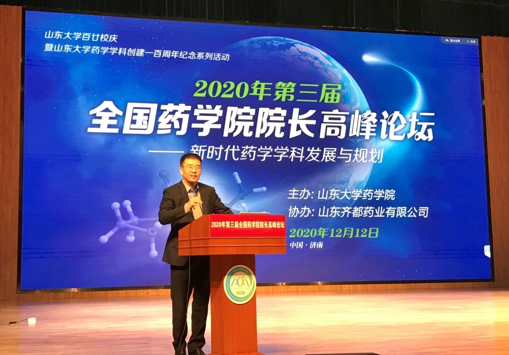2020年12月12日,第三届全国米乐·M6(China)官方网站院长高峰论坛在山东大学趵突泉校区举行。此次论坛主题为“新时代药学学科发展与规划”。中国科学院院士邓子新、中国药科大学副校长姚文兵、米乐院长刘新泳在论坛上作主题报告。沈阳药科大学副校长宫平及全国近50所重点院校米乐·M6(China)官方网站院长出席会议。山东大学副校长兼齐鲁医学院院长易凡,中国药科大学副校长姚文兵,山东齐都药业有限公司董事长、党委书记郑家晴出席开幕式并致辞。