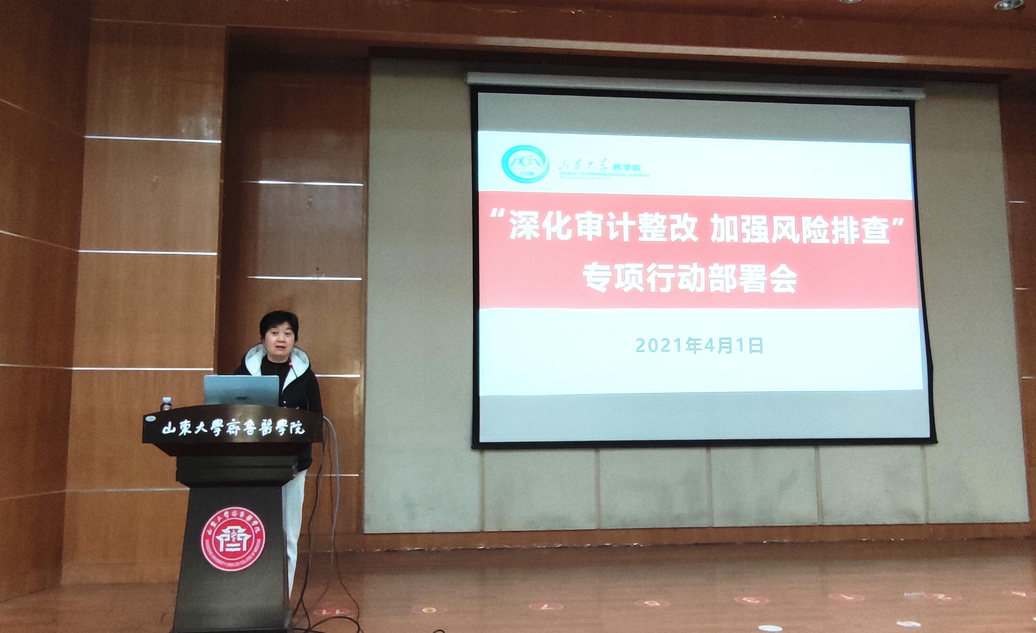 为贯彻落实学校“深化审计整改,加强风险排查”专项行动部署会议精神,推进专项行动与党史学习教育相贯通,4月1日下午,米乐·M6(China)官方网站召开“深化审计整改 加强风险排查”专项行动部署会。学院党委书记王秋生、党委副书记张慧讲话。会议由王秋生主持。