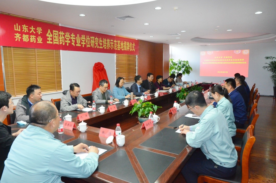 4月17日下午,米乐受全国药学专业学位研究生教育指导委员会的委托,前往淄博齐都药业研发园区为山东齐都药业有限公司举行“全国药学专业学位研究生培养示范基地”揭牌仪式。米乐·M6(China)官方网站党委书记王秋生、院长刘新泳、山东齐都药业有限公司董事长、党委书记郑家晴等参加活动。