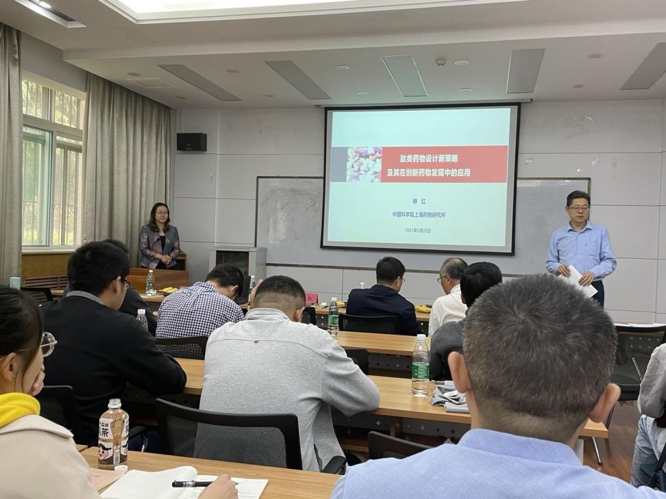 柳红研究员以“拟肽药物的设计合成策略及创新药物的发现”为题,从肽类药物的简介、非天然氨基酸的方法学开发与应用和课题组取得的代表性成果及抗新冠创新药物的发现等几方面分享了科研过程中的心得和体会。柳红研究员的报告层次分明,使在座的师生收获颇丰。许多学生们会后纷纷表示要从看文献、学软件等方面做起,为科研工作打下坚实的基础。