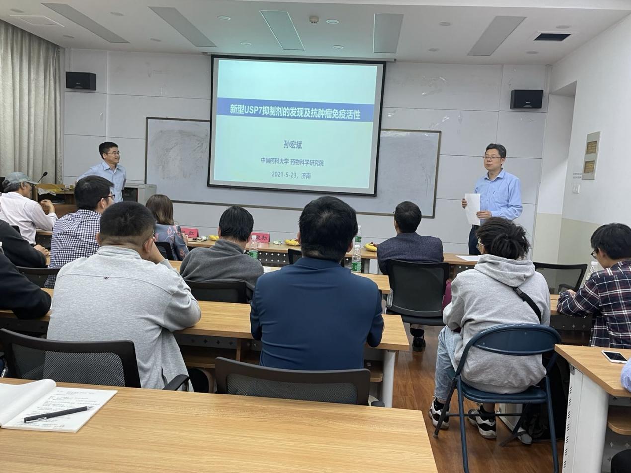 孙宏斌教授以“新型USP7抑制剂的发现及抗肿瘤免疫活性”为题,从设计、合成、活性评价和机制等几方面,层次分明的阐述了新型USP7抑制剂的发现历程并分享了科研过程中的心得和体会。孙宏斌教授的报告深入浅出,层次分明,使在座的师生受益匪浅。