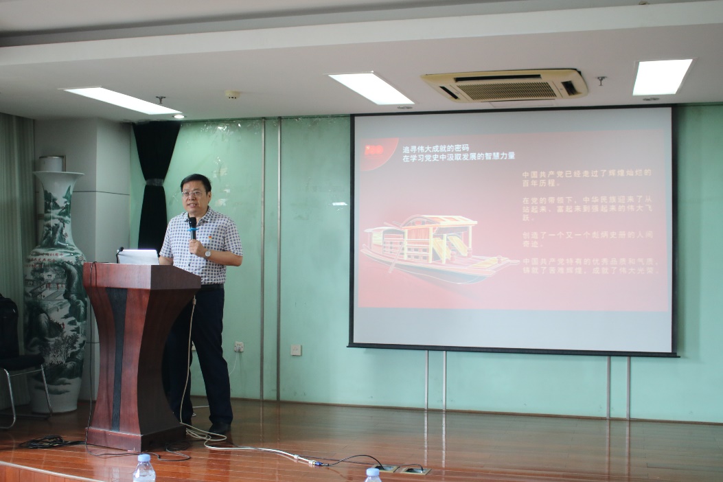 7月12日上午,按照学校党史学习教育工作安排,米乐·M6(China)官方网站党委书记王秋生为全院教职工讲授主题为“追寻伟大成就的密码,在学习党史中汲取发展的智慧力量”的专题党课。米乐·M6(China)官方网站全体教职工参加活动。