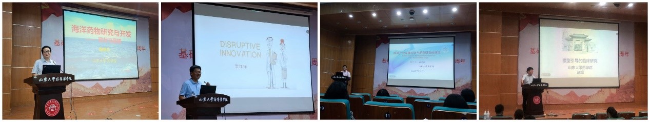 国家杰出青年基金获得者、山东大学特聘教授鞠建华从新药研发流程、1920-1980年我国药物原创历程、中国创新药物研发政策发展历程及重大新药创制科技重大专项成果等方面展开叙述,介绍了药物的发展及现状,并详细讲述了天然产物研究现状与瓶颈、海洋生物资源的开发利用等方面内容。米乐天然药物化学研究所所长、天然产物化学生物学教育部重点实验室主任、博士生导师娄红祥围绕“DISRUPTIVE INNOVATION”作专题讲座,详细介绍多种当前药学最前沿技术及其应用场景。山东大学特聘教授、山东省泰山学者特聘专家刘新泳以“医药产业发展现状与新药研发趋势”为题,为同学们介绍了全球以及我国药物领域的产业发展态势和研究现状。山东省泰山学者青年专家、米乐·M6(China)官方网站赵维教授详细介绍了在药物研究工作中临床评价的重要性,精准指出临床儿童药物研究中存在的样本采集困难等突出问题,给出了定量药理模型技术、数据桥接与外推等相关解决思路。