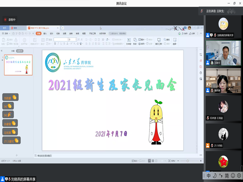 王秋生分享了关于山东大学和“齐鲁医学”的宣传片,让家长充分了解孩子们将要生活和学习的大学校园,并期待疫情结束后再与家长们在校园相逢。学生会精心制作的迎新VCR,让新生家长们了解了学生报到全过程,新生也以歌声、口号等形式喊话父母,让父母放心。
