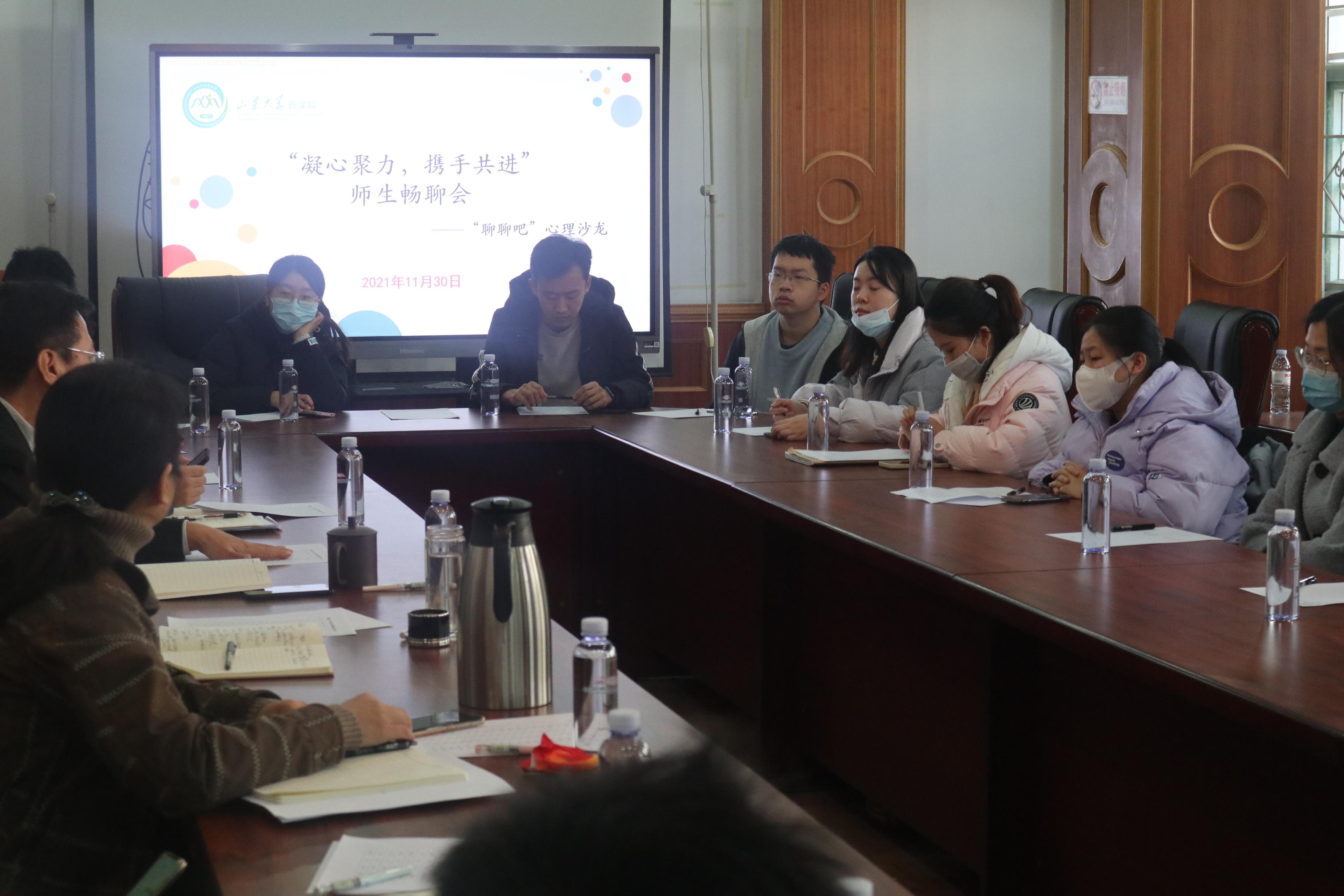为进一步提高教育教学质量,提升学生精准管理服务水平,回应学生关切,切实推动“我为群众办实事”实践活动,11月30日,米乐·M6(China)官方网站召开了“凝心聚力,携手共进”师生畅聊会—“聊聊吧”心理沙龙活动。米乐·M6(China)官方网站党委书记王秋生、常务副院长方浩、副院长沈涛、20名研究生代表参加座谈会。