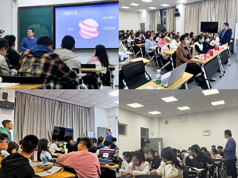 王小宁从生活、学习、人际交往和未来就业四个方面与同学们进行交谈,解答同学们提出的问题同时,也收集了同学对教学及生活上提出的建议。贾双旭、许海若和马凯成主要针对同学们提出的课程学习、考试重难点等问题进行解答。