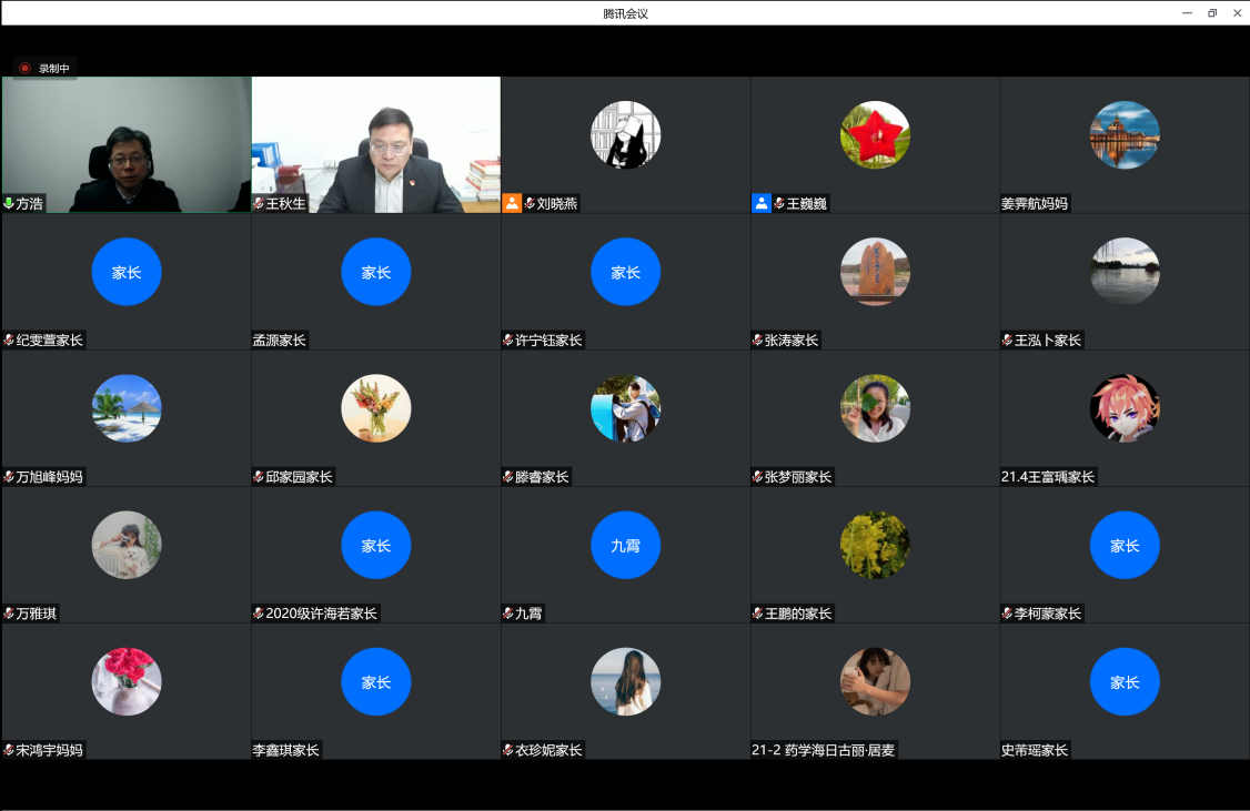 自济南市疫情发生以来,学院党委和行政干部深入一线指导疫情防控工作,与教师志愿者们拿起行李入住校内,与学生同吃同住、风雨同舟,及时了解学生心理状态,用最“硬核”的方法,最“温情”的关怀,最“严密”的举措,筑牢学校安全防护网。通过本次云端会议,学院、辅导员、家长通力配合,架起家校协同防控、协同育人的桥梁,确保学生身体和心理健康,共同促进药学学子健康成长成才。