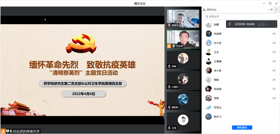 无数英雄抛忠骨,华夏盛开清明花。为缅怀革命先烈和战“疫”先锋,弘扬爱国主义精神,继承优良革命传统,同时凝聚党群力量,增进支部间、党员间合作交流。2022年4月4日上午9点,米乐研究生第二党支部与公共卫生学院厚德四支部共同举办“缅怀革命先烈,致敬抗疫英雄”清明祭英烈线上主题党日活动。本次主题党日活动共分为四个环节,双方党支部全体党员、积极分子通过腾讯会议线上参加。