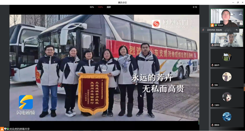 接下来,双方支部成员共同学习山东省支援威海临床医学检验专家白晓卉老师的战“疫”事迹,并观看短片《永远的芳卉》,同志们纷纷向白老师表达缅怀与哀思,并作出庄严承诺:要在疫情防控和守护校园安全中主动担当作为、践行初心使命,为打赢疫情防控阻击战贡献青春力量。