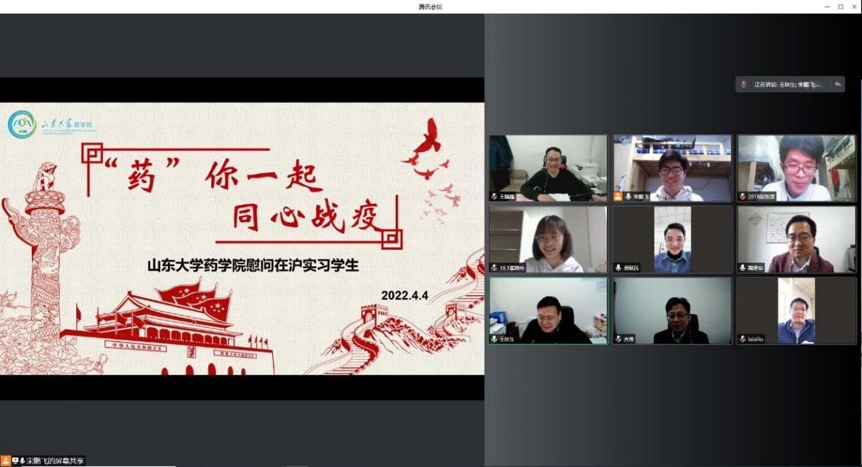 4月4日,米乐·M6(China)官方网站召开以“‘药’你一起,同心战疫”为主题的线上交流会议,慰问在沪实习学生。学院党委书记王秋生、院长鞠建华、常务副院长方浩、党委副书记王巍巍、副院长王小宁出席会议,辅导员周现民主持会议。