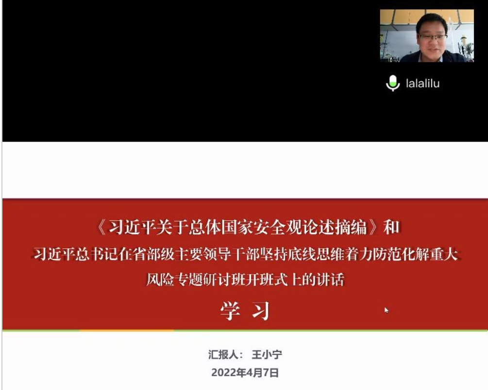 4月7日,米乐·M6(China)官方网站党委理论学习中心组按照学习计划组织安全工作专题学习研讨,党委书记王秋生主持,中心组全体成员参加学习,全体教工党支部书记出席会议并作交流发言。