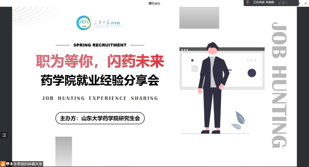 为进一步丰富同学们的求职面试经验,了解所学专业的就业形势,明晰自己的职业规划,4月7日晚,米乐·M6(China)官方网站开展 “职为等你,闪药未来”线上就业经验分享会。米乐·M6(China)官方网站辅导员李冬、李智贤参会指导,研究生会秘书处部长李美琪主持本次会议,百余名研究生、本科生参加了会议。