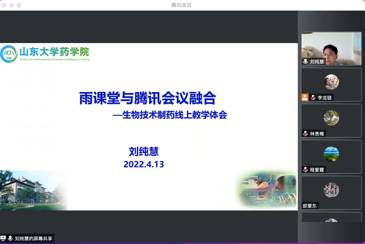 刘纯慧教授以《雨课堂与腾讯会议融合——生物技术制药线上教学体会》为主题,从备课、课前准备、雨课堂+腾讯会议联动技巧等几个方面,以上好一门课为示例,演示两个平台的联动方式,并结合生物技术制药课程的特点,分享了线上教学的体会。