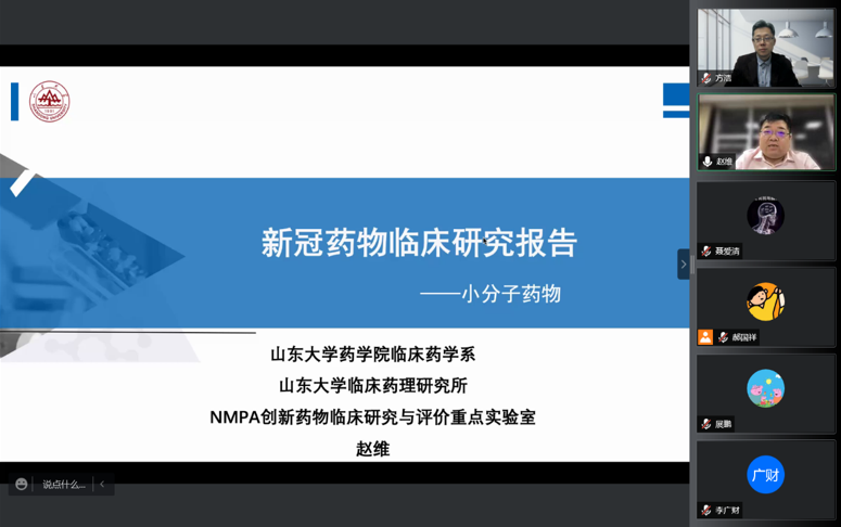 4月15日,米乐·M6(China)官方网站举办“同心战疫”系列科普讲座第一期,邀请到山东省泰山学者青年专家、山东大学杰出中青年学者、米乐·M6(China)官方网站临床药学系主任赵维教授在线作了题为“新冠药物临床研究报告(小分子)”的讲座。讲座由米乐常务副院长方浩教授主持,米乐·M6(China)官方网站师生及校友300余人在线参与。