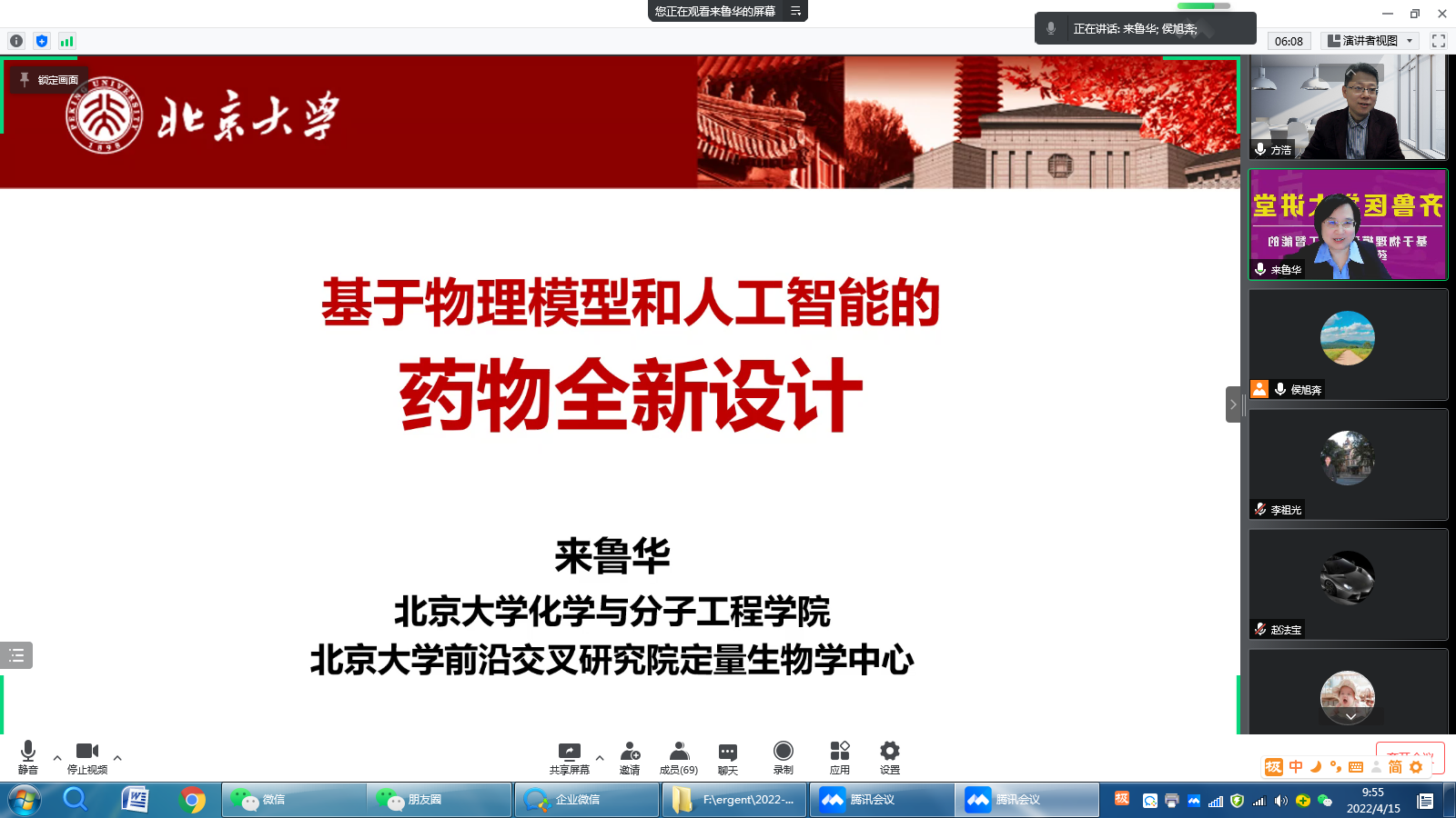 2022年4月15日,由米乐承办的齐鲁医学大讲堂顺利举行。北京大学化学与分子工程学院的来鲁华教授应邀通过腾讯会议线上平台作了题为“基于物理模型和人工智能的药物全新设计”的学术报告。本次报告由米乐常务副院长方浩教授主持,来自山东大学、中国海洋大学、中国医科大学等200余位师生共同参加线上交流研讨。