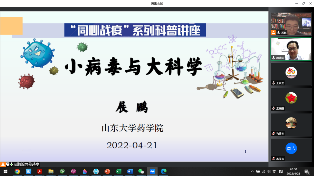 4月21日,米乐·M6(China)官方网站顺利举办了“同心战疫”系列科普讲座的第二期,邀请到国家高层次青年人才、米乐·M6(China)官方网站展鹏教授在线作了题为“小病毒与大科学”的科普讲座。讲座由米乐院长鞠建华教授主持,米乐·M6(China)官方网站师生及校友280余人在线参与。