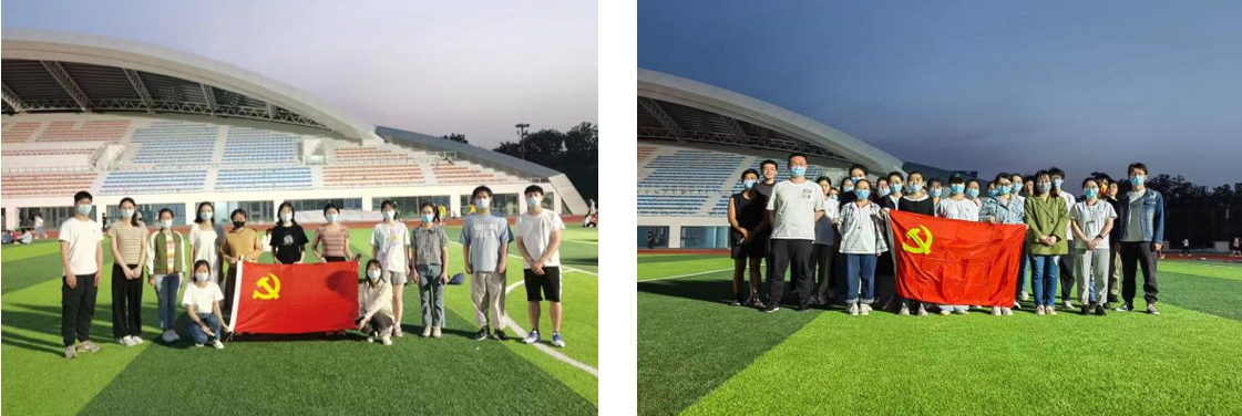 研究生第二和第八党支部利用微信朋友圈发起跑步挑战,双方党支部全体党员、积极分子相约趵突泉校区体育场接续完成跑步打卡。